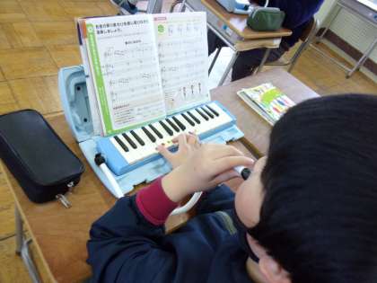 次に、鍵盤ハーモニカでそれぞれの和音を担当し、曲に合わせて演奏しました。