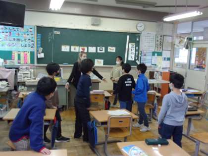 3月1日(火) 3年生 外国語活動 ○○な動物は? 公開日 2022/03/01 更新日 2022/03/01 3年生 教室内に隠された様々な動物を探し回っています。 ALTがSomething long と言うと、ヘビやしっぽの長い猿等の絵を探して持ってきました。 楽しそうです。 絵本の読み聞かせもワクワクしながら聴いています。