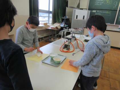 3月1日(火)3年生 理科「物の重さをくらべよう」 公開日 2022/03/01 更新日 2022/03/01 3年生 砂糖と塩のどちらが重いのかを調べました。 比べる物の体積を同じにするために、どのようにすればよいかを考えました。 塩と砂糖を実際に持って予想を立てた後に、電子天秤で重さを量りました。さて、どちらが重かったかな?どうしてかな?新たな疑問が生まれますね。