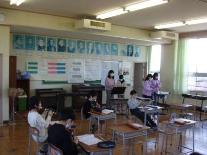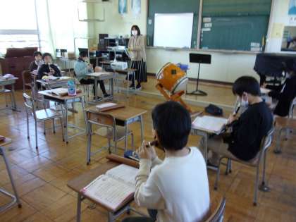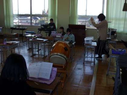 音楽室からディズニーランドでよく流れているような曲が、、、。「ジッパ ディー ドゥ ダー」をいろいろな楽器で演奏しています。