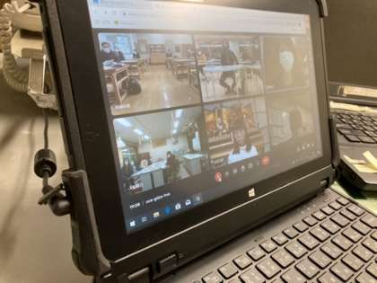 今日は、新旧の引継ぎも行うことから、ご来校いただき、密を避けるために、三つの部屋に分散して各部屋をオンラインでつないで実施しました。