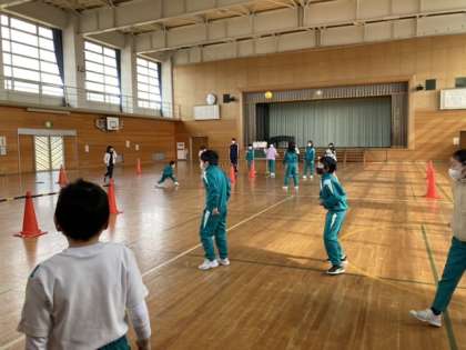 3月10日(木) 3・4年生 体育科 プレルボールをしよう 公開日 2022/03/10 更新日 2022/03/10 4年生 プレルボールをしています。 誰ににパスをするか、どうしたら点が入るかなど、作戦をみんなで考えながら、夢中で取り組んでいます。