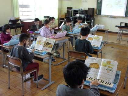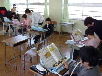 鍵盤ハーモニカで合奏中です。