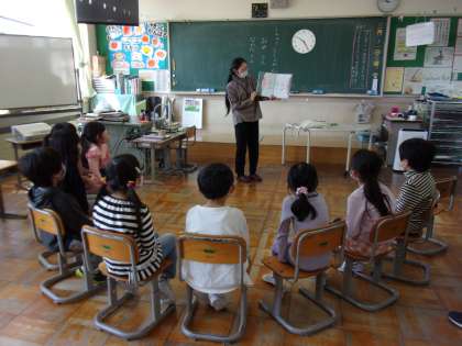3月11日(金) 1年生 読み聞かせ 公開日 2022/03/11 更新日 2022/03/11 1年生 婦中図書館から2名の方が来校され、1年生に読み聞かせをしてくださいました。 本大好き1年生は、身を乗り出してお話に夢中です。 今日は、「卵」のお話を聴かせていただきました。