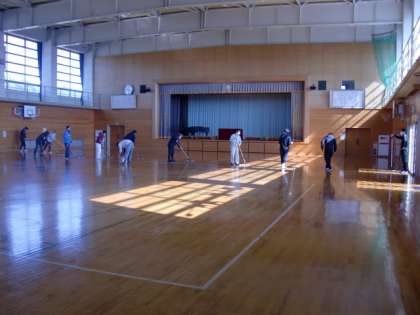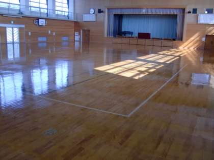 今年度の体育の授業をはじめ、いろいろな集会活動等で使ってきた汚れや傷が目立っていましたが、皆様のお陰で、見違えるほど輝きを増した体育館に生まれ変わりました。