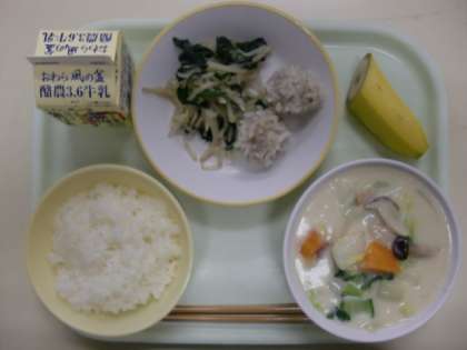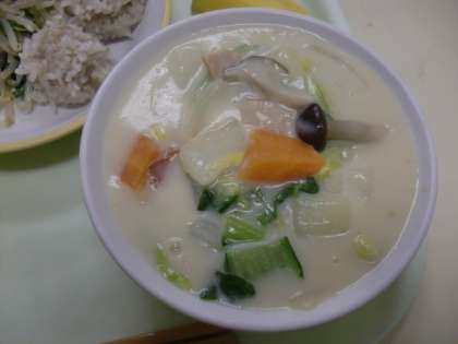 「白菜の中華クリーム煮」は、給食では新しいメニューで、今月の給食だより「献立紹介」にレシピが載っています。ご家庭でもおかずの一品としていかがですか。