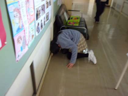 子供たちは、密をさけ、廊下を走らず、学校中を歩き回って卵を探します。