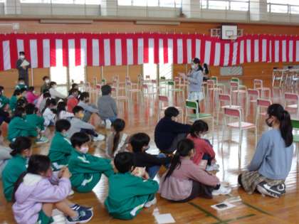 3月15日(火) なかよし班解散式 公開日 2022/03/15 更新日 2022/03/15 朝日小学校NEWS 1年間、「なかよし班」として共に活動してきました。 業間タイムで、班ごとにお別れ会をしました。思い出を語り合ったり、感謝の気持ちを伝え合ったりしました。 最後の最後までミニゲームをして仲良く楽しむ班もありました。