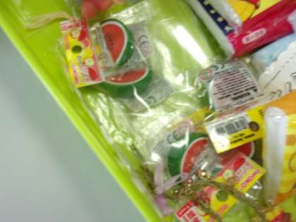 参加賞も含め、朝日っ子全員に副賞を選ぶ楽しみもありました。子供たちはワクワクしながらパソコン室へやって来ました。さすが、朝日の子!「スイカ消しゴム」が大人気でした。