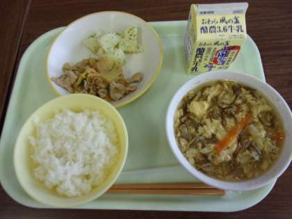 3月16日(水) 今日の給食は? 公開日 2022/03/16 更新日 2022/03/16 給食室 今日のメニューは、 1 ごはん 2 牛乳 3 卵ともずくのスープ 4 豚肉のキムチ炒め 5 粉ふきいも です。 「もずく」は昆布やわかめ等と同じ海藻(かいそう)で、暖かい地方の浅い海に生息しています。沖縄でたくさん採れるそうです。食物繊維たっぷりで体にとてもよいのですよ。