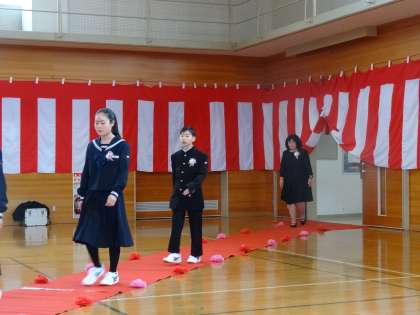 3月18日(金) 卒業式 卒業生入場 公開日 2022/03/18 更新日 2022/03/18 学校行事 卒業生入場です! 中学校の制服姿が新鮮です。急に大人びて見えます。 レッドカーペットの上を堂々と歩いて入場です。