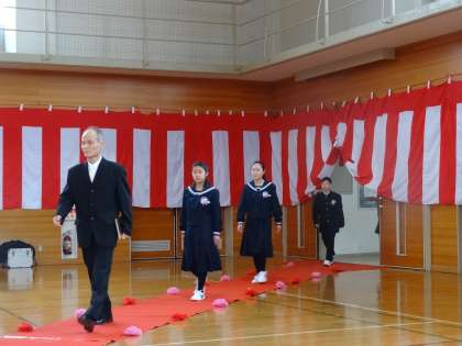 3月18日(金) 卒業式 卒業生入場 公開日 2022/03/18 更新日 2022/03/18 学校行事 卒業生入場です! 中学校の制服姿が新鮮です。急に大人びて見えます。 レッドカーペットの上を堂々と歩いて入場です。