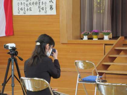 卒業の歌は、事前に伴奏、一人ずつのパート、三人合わせた高音部のパートを録音し、重ね合わせたものをスピーカーから流し、今日は三人で低音部を歌って合唱を完成させました。