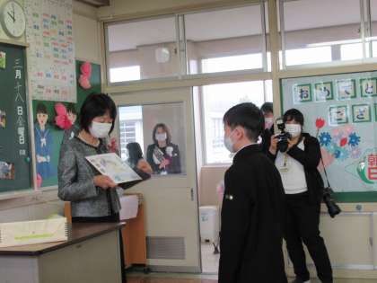 卒業式を終え、少し緊張の糸がほぐれた卒業生が教室に戻ると、、、なんと!校長先生からのサプライズプレゼント!