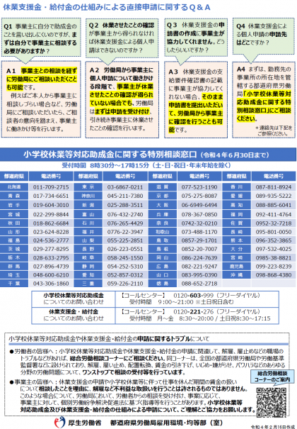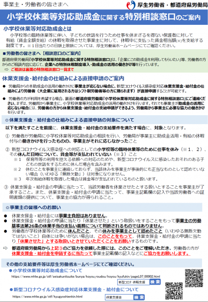 3月18日(金)  【お知らせ】「新型コロナウイルス感染症による小学校休業等対応助成金・支援金」に係る再度の周知について