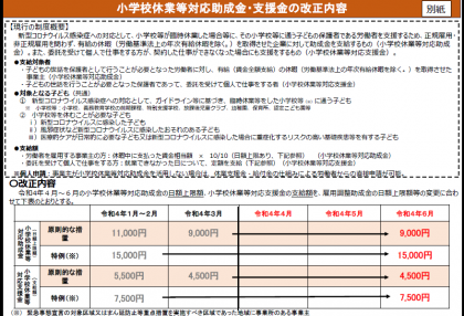文部科学省・厚生労働省から、「新型コロナウイルス感染症による小学校休業等対応助成金・支援金」に係る再度の案内がありました。