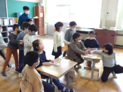 3月23日(水) 2年生 学級お楽しみ会 公開日 2022/03/23 更新日 2022/03/23 2年生 みんなで企画したお楽しみ会をしました。 早押しの用具を使って本格的に早押しクイズもしました。 ペットボトルを使って、ボーリングも楽しみました。