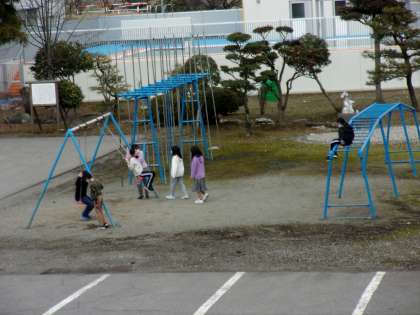 みんなで前庭に出て無邪気に遊んでいます。仲良しです。