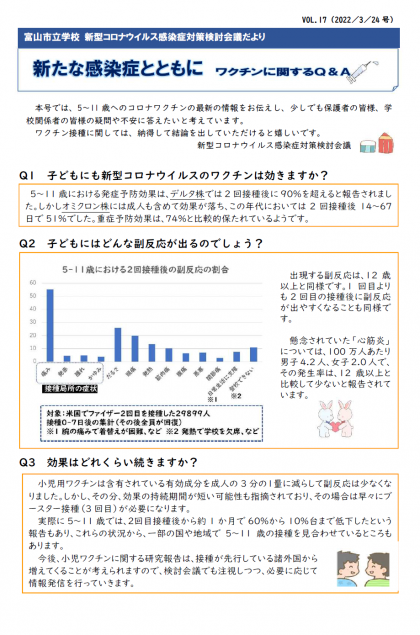 3月23日(水) 「新型コロナウイルス感染症対策検討会議だよりVOL.17」について