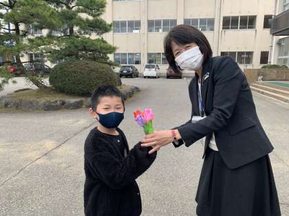 校長先生や担任の先生に挨拶しに来てくれた朝日っ子と保護者の皆様、ありがとうございました!