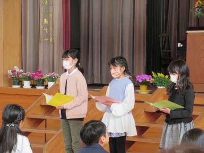 6年生が、歓迎のことばを述べました。これからの学校生活が楽しみになるような紹介でした。