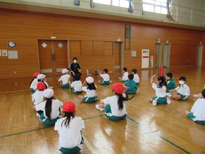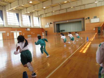 4月11日(月) 1・2年生 体育の学習 公開日 2022/04/11 更新日 2022/04/11 1年生 1年生は初めての体育を2年生と合同で行いました。手をたたいて走ったり、スキップしたり、後ろ向きに座ってスタートしたりと、楽しく走る活動をしていました。暖かいので、たくさん汗をかいてがんばっていました。水分補給も忘れずに行っていきます。