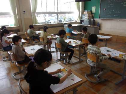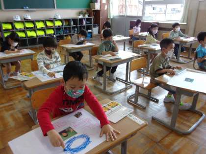 4月13日(水) 1年生 図工「すきなものをかこう」 公開日 2022/04/13 更新日 2022/04/13 1年生 クレパスで、自分の好きなものを画用紙いっぱいに描いています。 動物やお花など、みんな思い思いに楽しみながら描いています。
