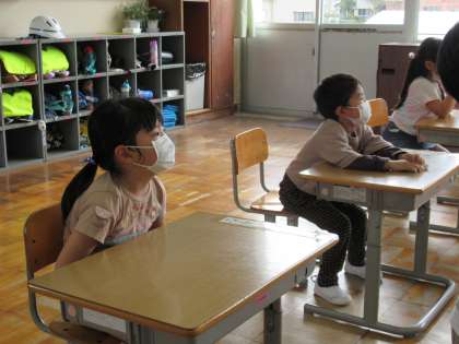 4月13日(水) 1年生 ひなんのしかたをかんがえよう 公開日 2022/04/13 更新日 2022/04/13 1年生 学校にいるときに、火事や地震、水の事故が起きたときに、どのように自分の身を守ればよいかを学びました。先生の話を真剣に聞いている姿がすてきです。