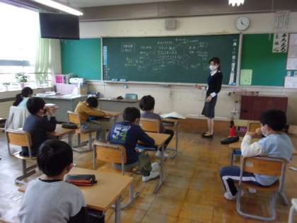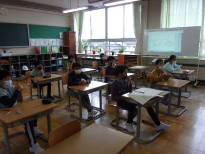 目指す学級の姿から、学級目標を決める話合いをしています。また、「学級の歌をつくろう」という担任の呼びかけ問いかけに、子供たちは、リズムや歌詞など進んで意見を出し合っています。どんな歌ができるか楽しみです。