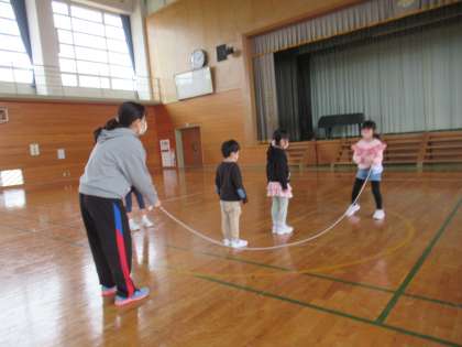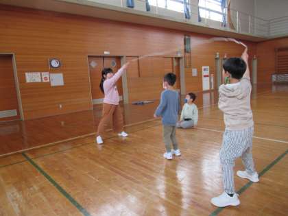 4月15日(金) 1・2年生 おおなわちゃれんじ! 公開日 2022/04/15 更新日 2022/04/15 2年生 1年生と2年生で、なかよく大縄にチャレンジしています。「1年生とんでいいよ」と、2年生のやさしい声かけが聞こえてきます。すっかりお姉さんお兄さんです。