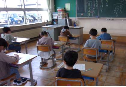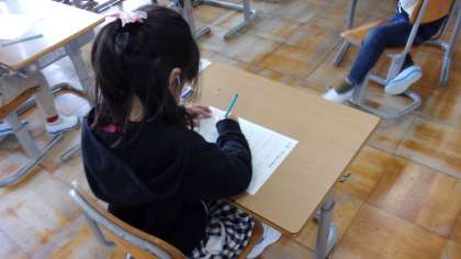 4月19日(火) 1年生 書写の学習 公開日 2022/04/19 更新日 2022/04/19 1年生 書写の時間に、鉛筆の持ち方や姿勢に気を付けて、いろいろな線をなぞりました。姿勢を正すときの合い言葉「ぐう、ぴた、ぴん」で、意識をしながら書くことができました。