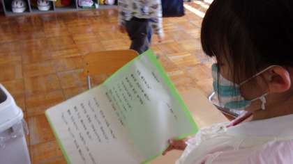 4月22日(金) 2年生 国語の学習 公開日 2022/04/22 更新日 2022/04/22 2年生 「ふきのとう」の物語を、音読で表現しています。お面もつくり、役になりきって声を出し、物語の世界を楽しみます。