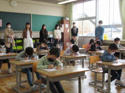 4月23日(土) 1年 国語の学習 公開日 2022/04/23 更新日 2022/04/23 1年生 ひらがなを練習しています。初めての学習参観で緊張気味の1年生。おうちの人にがんばっているところを見てもらおうと、一生懸命取り組んでいます。