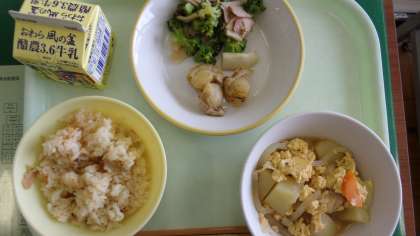 5月2日(月) 今日の給食 公開日 2022/05/02 更新日 2022/05/02 朝日小学校NEWS 今日の献立は、五目ご飯、ほたての香味焼き、ブロッコリーとエリンギのソテー、あぶらふの卵とじです。 毎日、放送で「きのこの歌」が流れます。今日は、曲にぴったりの献立でした。