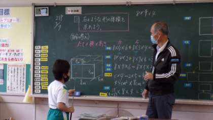 体積を工夫しながら求めました。友達の考えを聞き、自分の考え方と比較しながら進めています。
