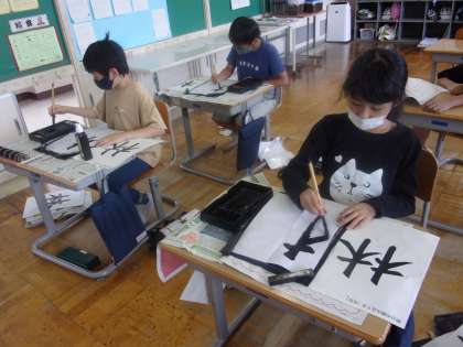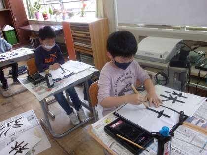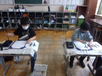 書写の授業で、今日は「林」の文字を書きました。横画、縦画、左はらい、とめに気を付けながら、左右のバランスを意識して、丁寧に筆を運びました。姿勢を正し、落ち着いて文字を書く気持ちを大切にしていきたいです。