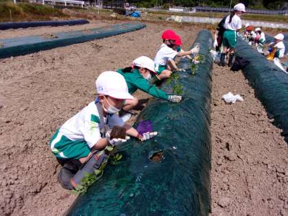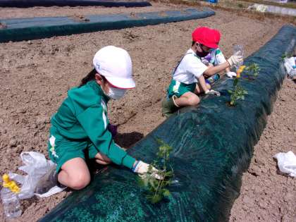 そして、それらの苗を「朝日のこどもわいわい農園」に植えました。