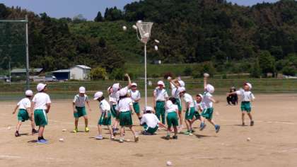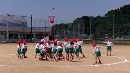 下学年玉入れの様子です。かわいらしいダンスと玉入れで盛り上がりました。
