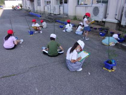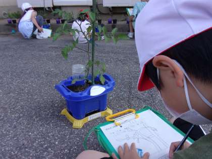 5月19日(木) 2年生 ミニトマトの観察をしました! 公開日 2022/05/19 更新日 2022/05/19 2年生 生活科の授業で、先日植えたミニトマトの観察日記を書きました。 いろいろな角度からじっくり見てみたり、触ってみたり、匂いをかいでみたり、葉っぱの数を一枚ずつ数えてみたり、葉と茎の色を比べてみたりと工夫して観察することができました。