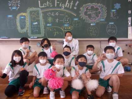 黒板に気合いの一言を書き合い、朝、気持ちを一つに出陣した4年生。競技に応援に初の仕事に、パワー全開、みんながハッピースマイルでした。大きな拍手を送りたいです。