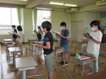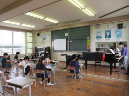 5月26日(木)6年生 音楽の学習 公開日 2022/05/26 更新日 2022/05/26 6年生 「翼をください」の合唱をしています。ハモリのパートは、主旋律よりも音の取り方が難しく、苦戦しています。音楽専科の先生のピアノをよく聞いて、練習しています。
