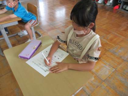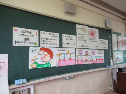 「はみがきパワーアップ週間」では、いくつかある目標の中から、自分の取り組みたい目標を選びます。「4つの目標全部やってもいいですか?」と、前向きな2年生でした。