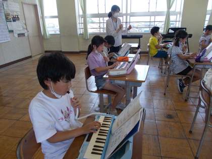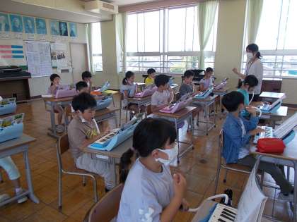6月2日(木) 3年 音楽の学習 公開日 2022/06/02 更新日 2022/06/02 3年生 リズムに合わせて手拍子したり、鍵盤ハーモニカを吹いたりしています。 みんな自信満々な表情で演奏しています。