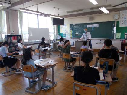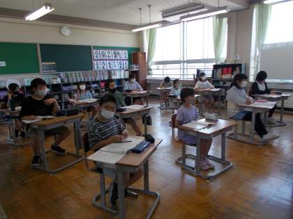 6月2日(木) 5年 算数の学習 公開日 2022/06/02 更新日 2022/06/02 5年生 長さが変わると、それにともなって値段はどう変わるかという学習をしています。みんなで考えを出し合い、問題を解決しています。