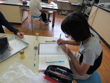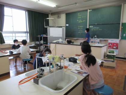 6月7日(火)6年生 理科の学習 公開日 2022/06/07 更新日 2022/06/07 6年生 気体検知管を使って、空気の割合を調べています。二酸化炭素は何パーセント?酸素は何パーセント?細かいめもりを読み取り、記録をします。器具を使って実験をするのは、緊張感があって、どきどきわくわくですね。