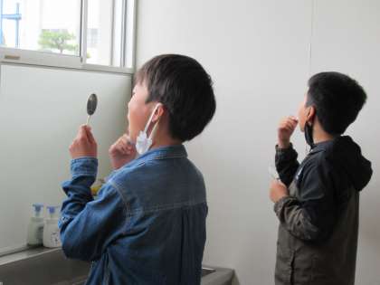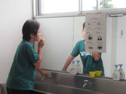 6月7日(水)はみがきパワーアップ週間3日目 公開日 2022/06/08 更新日 2022/06/08 なかよし班活動 今日で3日目、折り返し地点です。今日も歯みがきグッズを使って、ひとりひとりがめあてに向かって熱心に取り組んでいます。 お昼の放送では、養護教諭から朝夜の歯みがきについてお話しました。私たちが寝ている間にむし歯菌が活発になるので、寝る前にしっかり歯をみがきたいですね。お昼の給食の後だけでなく、食後はしっかりと歯みがきをしていきましょう。