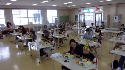 6月16日(木) 1年生 給食試食会 公開日 2022/06/16 更新日 2022/06/16 1年生 1年生のおうちの方と給食試食会を行いました。今日の献立は、鰆の西京焼、ひじきソテー、豆腐の野菜あんかけ、冷凍みかんです。野菜あんかけの中には、星型やハート型のラッキーにんじんが入っていて、喜んでいる子供たちもいました。 給食の味付けや安心・安全な給食づくりについて、富山市の栄養士さんから話をしていただきました。