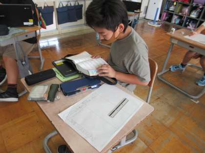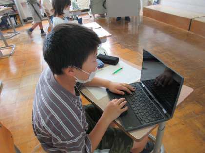6月20日(月)5年生 宿泊学習の振り返り 公開日 2022/06/20 更新日 2022/06/20 5年生 先日行った宿泊学習の振り返りとして、新聞を作っています。辞書やクロムブックを使って、漢字を調べています。英語で書いてみたいな、と挑戦している人もいました。工夫を凝らした新聞、完成が楽しみです。