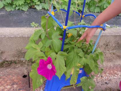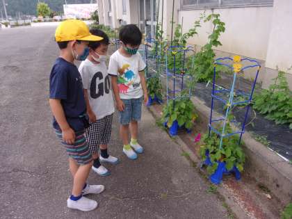 6月21日(火) 1年生 あさがおの観察 公開日 2022/06/21 更新日 2022/06/21 1年生 朝、いつものように水やりをするために外に出ると、びっくり。あさがおの花が咲いていました。 手のひらくらいの大きな花が咲き、うれしくなりました。