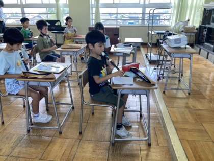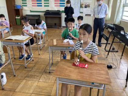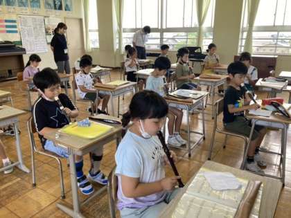 6月22日(水)3年生 音楽の学習 公開日 2022/06/22 更新日 2022/06/22 3年生 3年生は、リコーダーの練習に進んで取り組んでいます。上達した3曲を続けて演奏しています。タンギングや姿勢を意識して、美しい音色で演奏することができました。これからの上達も楽しみです。